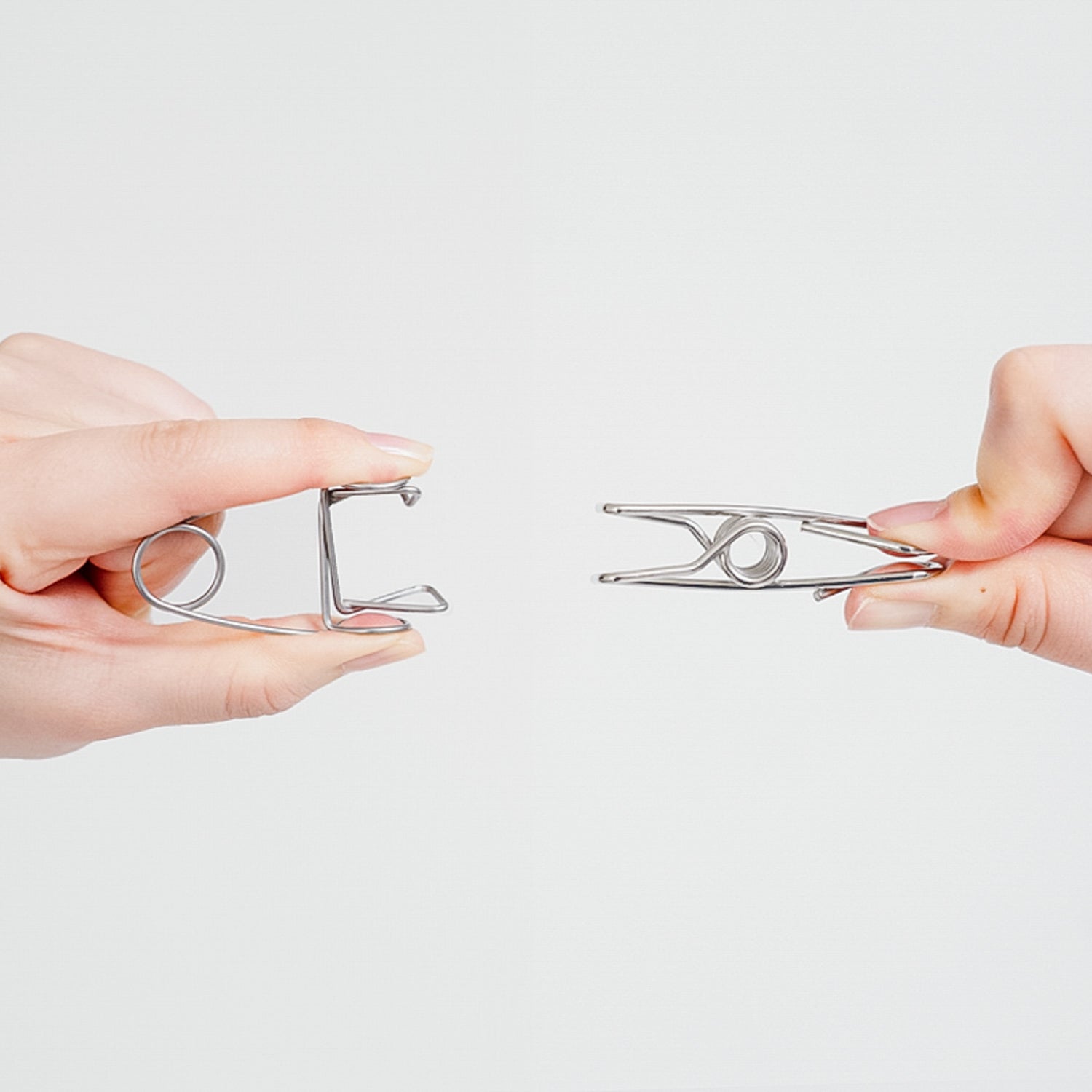 「丈夫だけど重い、硬い」といったステンレス製ピンチハンガーのイメージを覆す、柔軟性があるからこそ壊れにくい、ながく使えるピンチハンガーが生まれました。