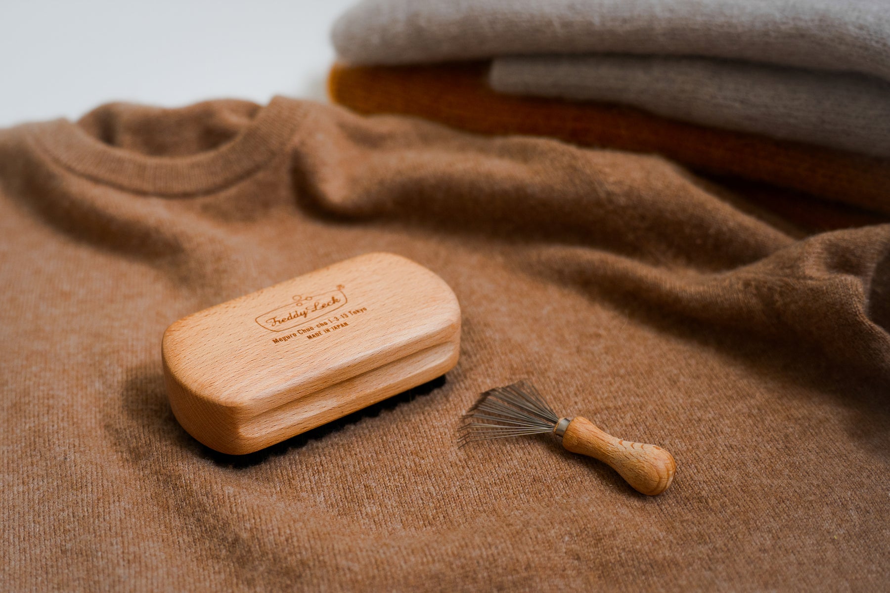 | 材質 | 毛玉取り用クロスブラシ ハード:猪毛、ビーチウッド(ブラシ本体)、スチール、ビーチウッド(ブラシクリーナー) |