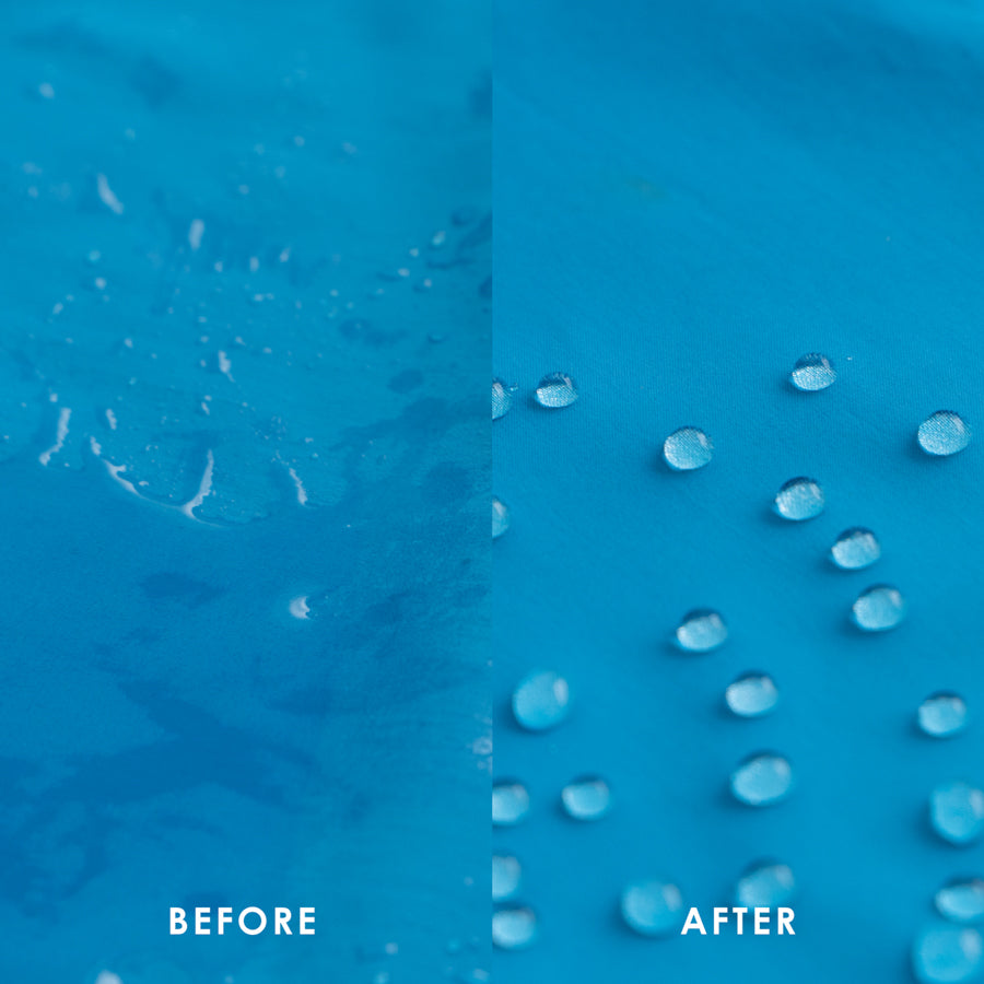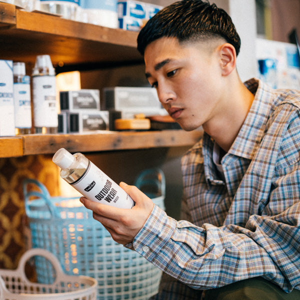 一般的に洗濯洗剤に含まれる香料・抗菌剤・柔軟成分などの"生地表面に留まることで効果を発揮する成分"は、撥水性を阻害する要因になります。 アウトドアウェアウォッシュは、「生地表面に洗剤の成分が残りづらい処方」がポイント。